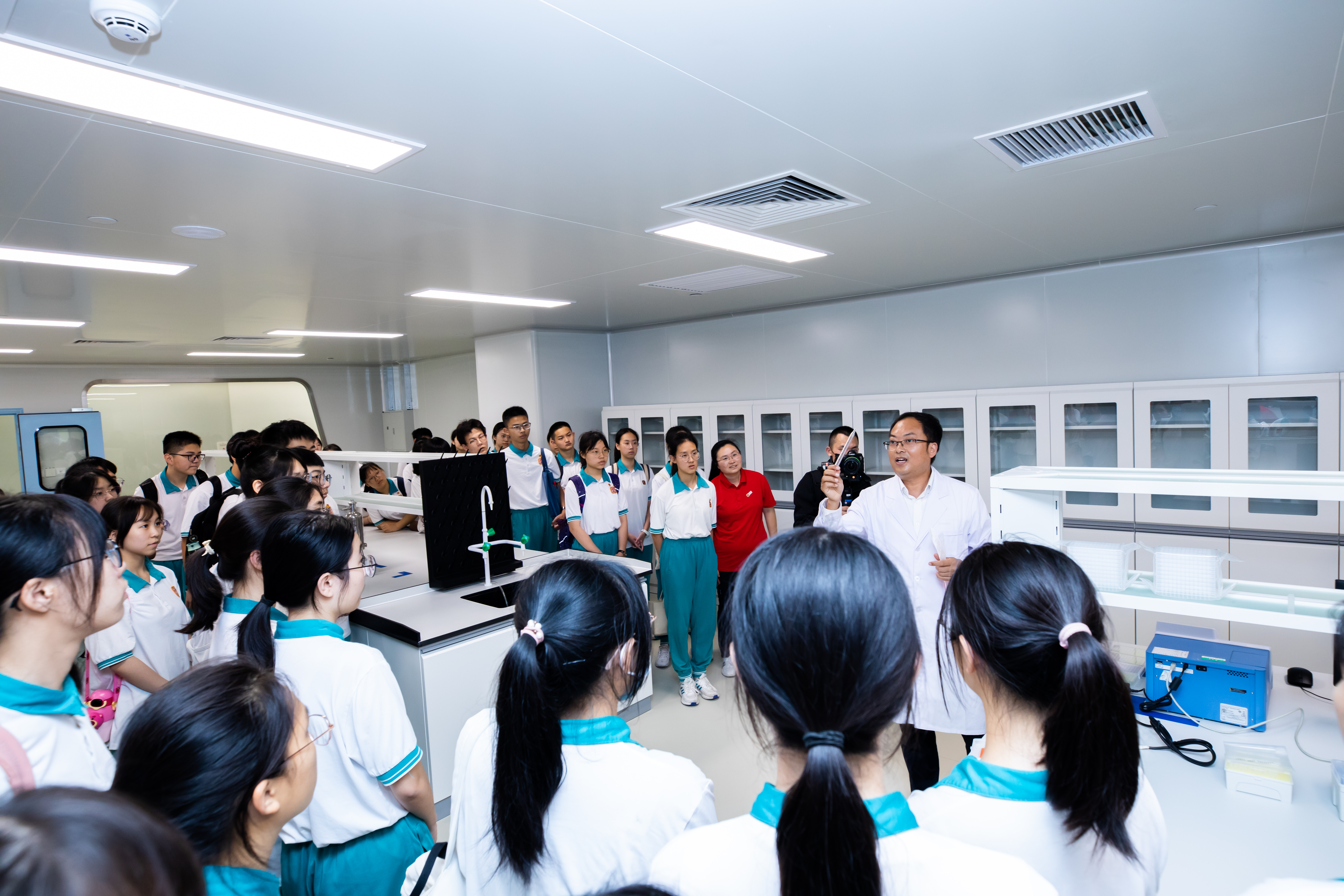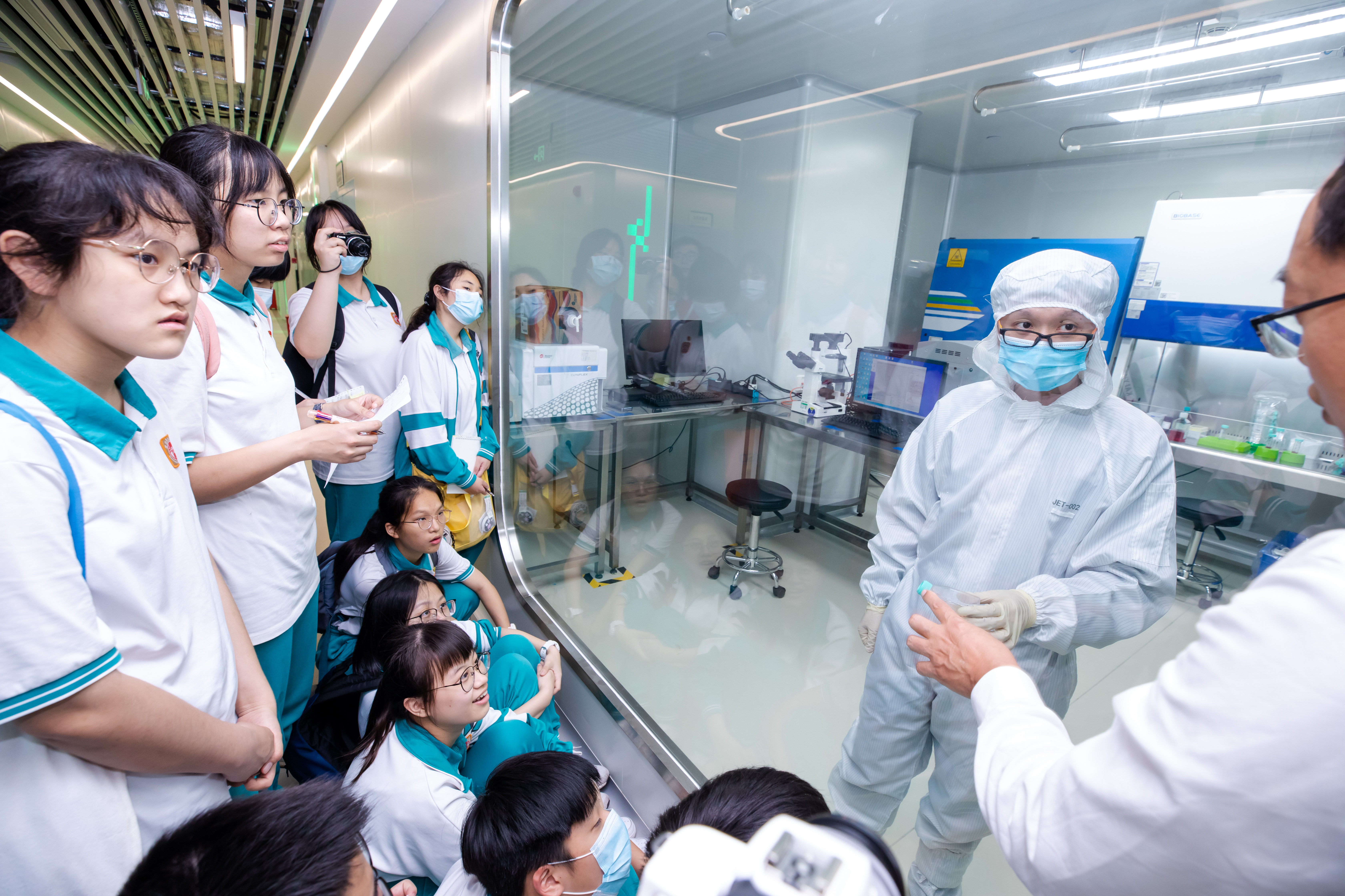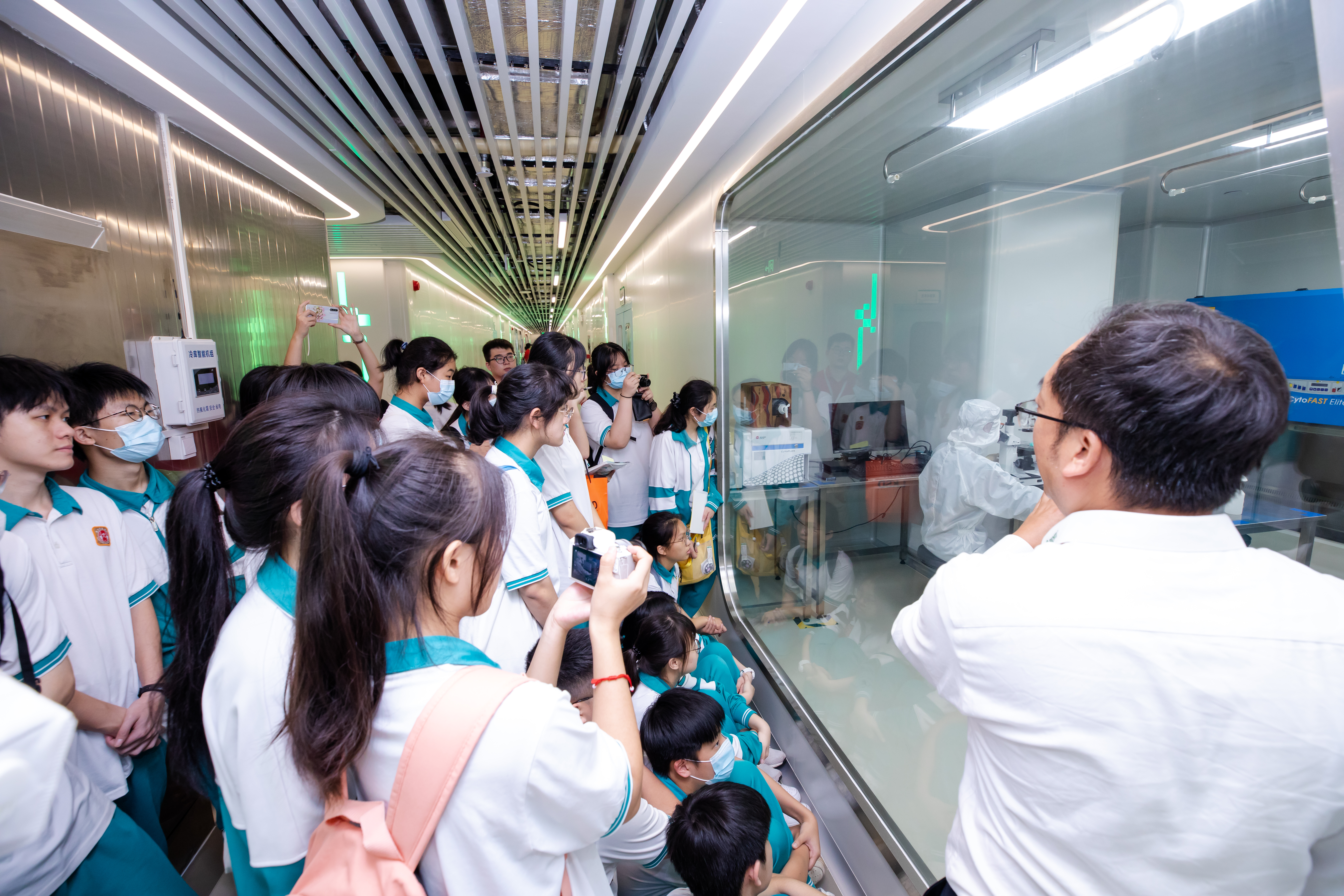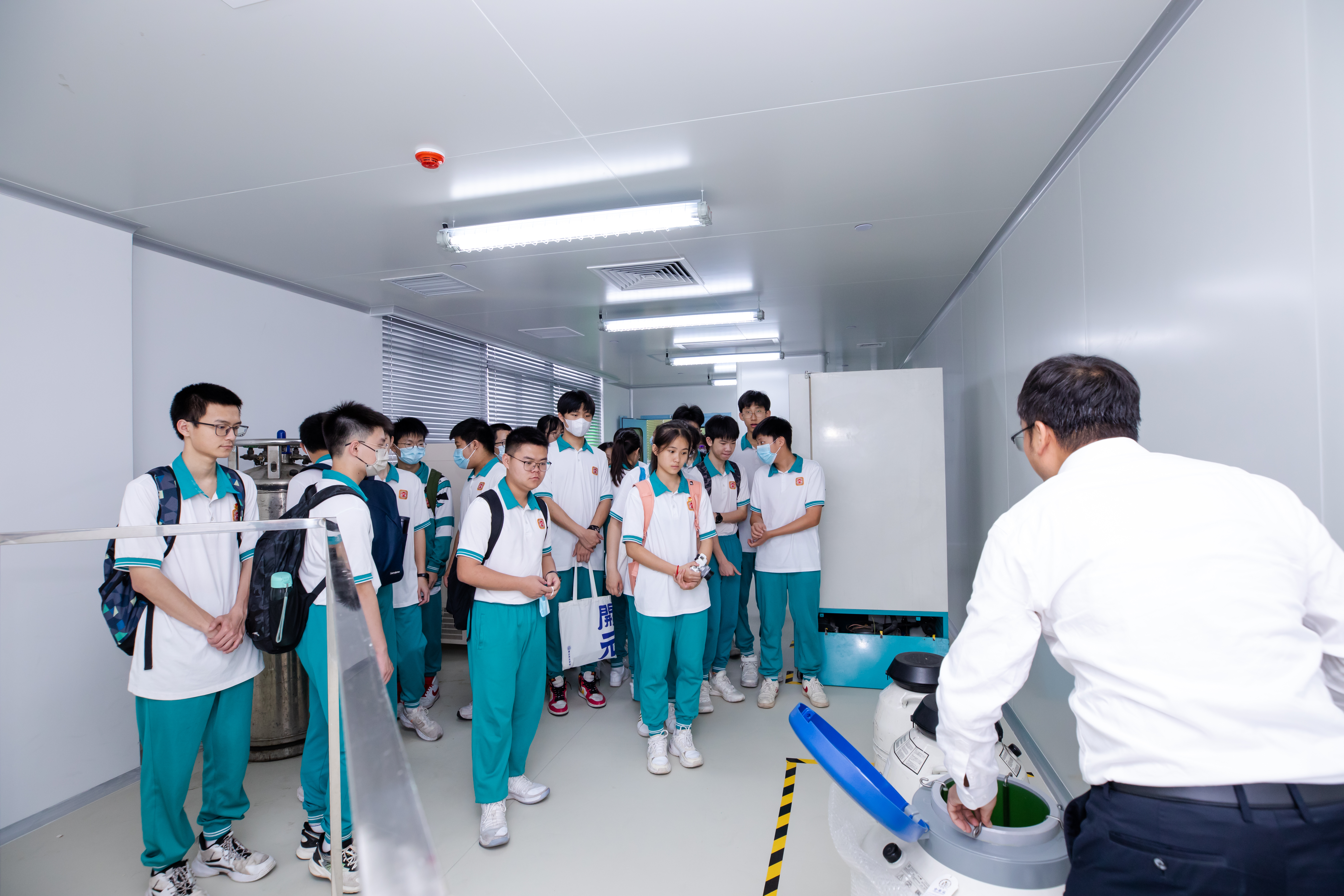 此次研學之旅,廣州開元學校師生不僅參觀了潔特生物的沉浸式生命科學體驗廳,還前往生產(chǎn)一線了解潔特生物最先進的無人工廠與智能化設(shè)備。同時,他們還來到潔特檢測中心,通過高精密的儀器設(shè)備與細胞零距離“見面”。
