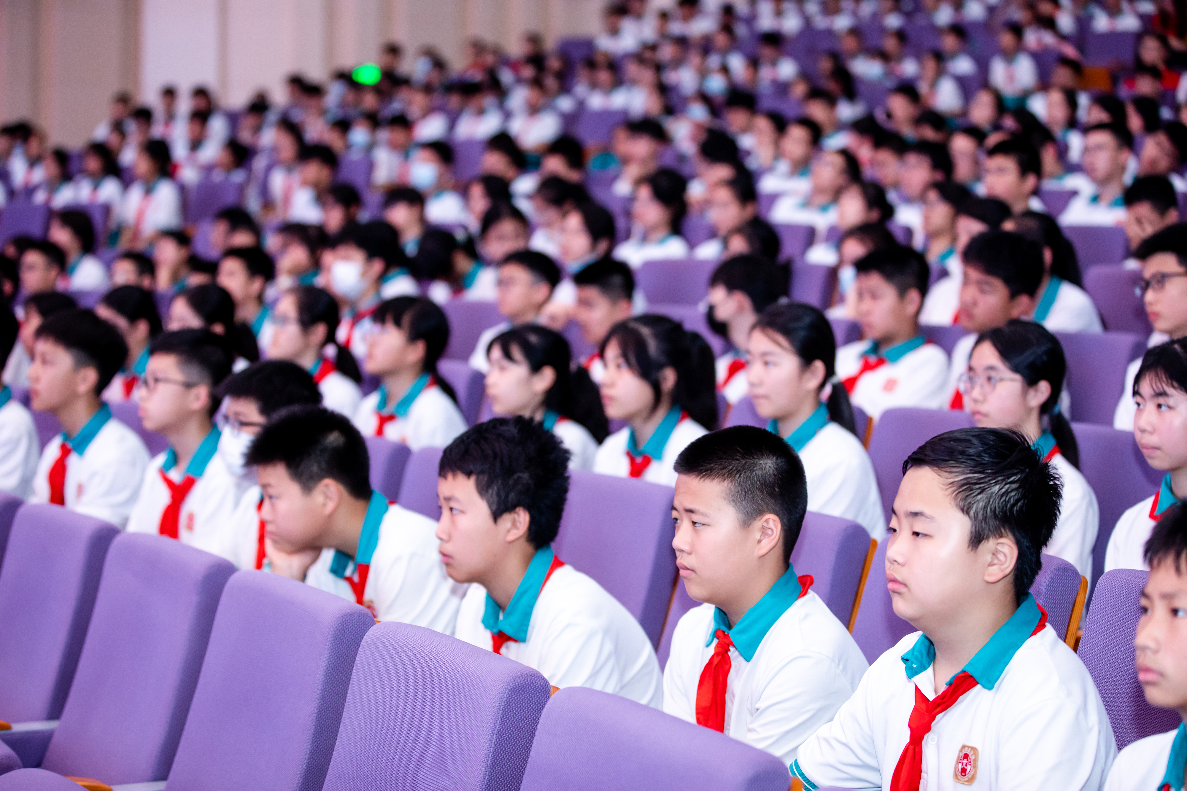 科普研學團到訪潔特生物前,在風景秀美的廣州開元學校曉暢閣里,潔特生物董事長袁建華還為廣州開元學校近500名師生做了主題為《世界是你們的,也是我們的,但歸根結(jié)底是你們的》的專題演講。