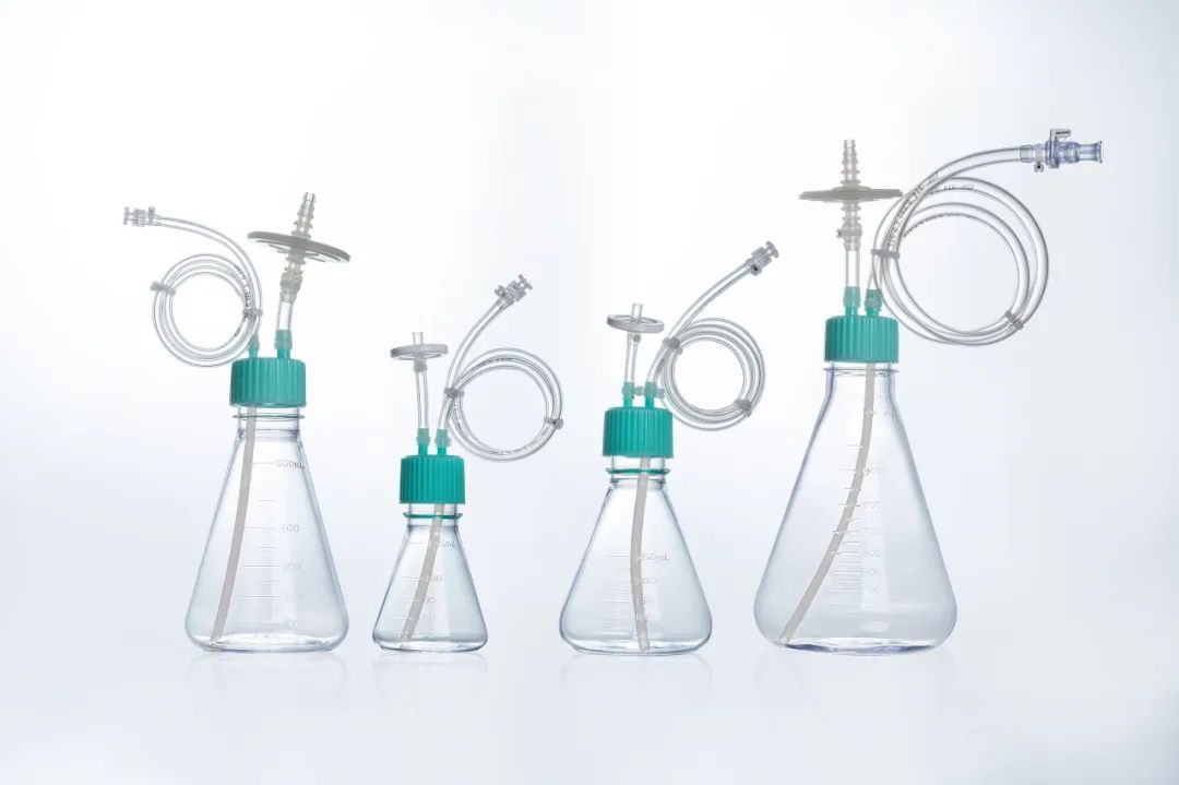 在生物制品的工業(yè)生產(chǎn)中,降低液體轉(zhuǎn)移、取樣等過程潛在的污染風(fēng)險(xiǎn)至關(guān)重要,三角培養(yǎng)搖瓶搭配無菌轉(zhuǎn)移蓋及管路系統(tǒng),即可避免開放式操作帶來的污染問題。