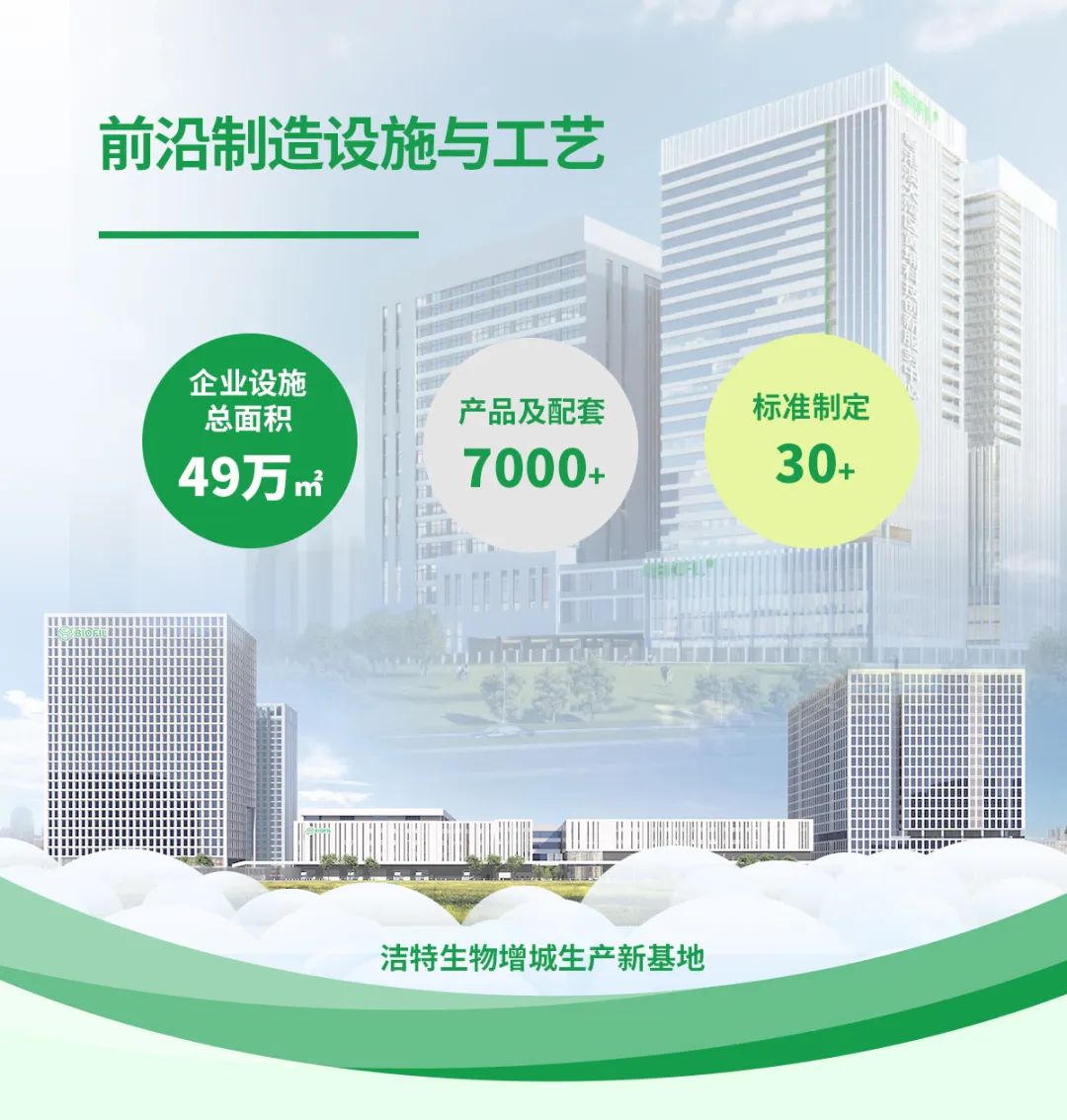 先進(jìn)的生產(chǎn)設(shè)施與生產(chǎn)工藝是踐行可持續(xù)發(fā)展理念與措施的前提條件。20多年來,潔特生物致力于成為提供生物實(shí)驗(yàn)室整體解決方案的高新技術(shù)企業(yè),始終聚焦產(chǎn)業(yè)升級(jí)。目前,企業(yè)著力打造的行業(yè)頂尖的智能制造及倉儲(chǔ)一體化生產(chǎn)基地,廣州黃埔總部設(shè)施總面積達(dá)16萬㎡,其中GMP級(jí)潔凈車間6.5萬㎡;增城新基地規(guī)劃占地面積達(dá)5.6萬㎡,總建筑面積33萬㎡,項(xiàng)目設(shè)計(jì)總產(chǎn)值40億元,已于今年逐步投入使用。