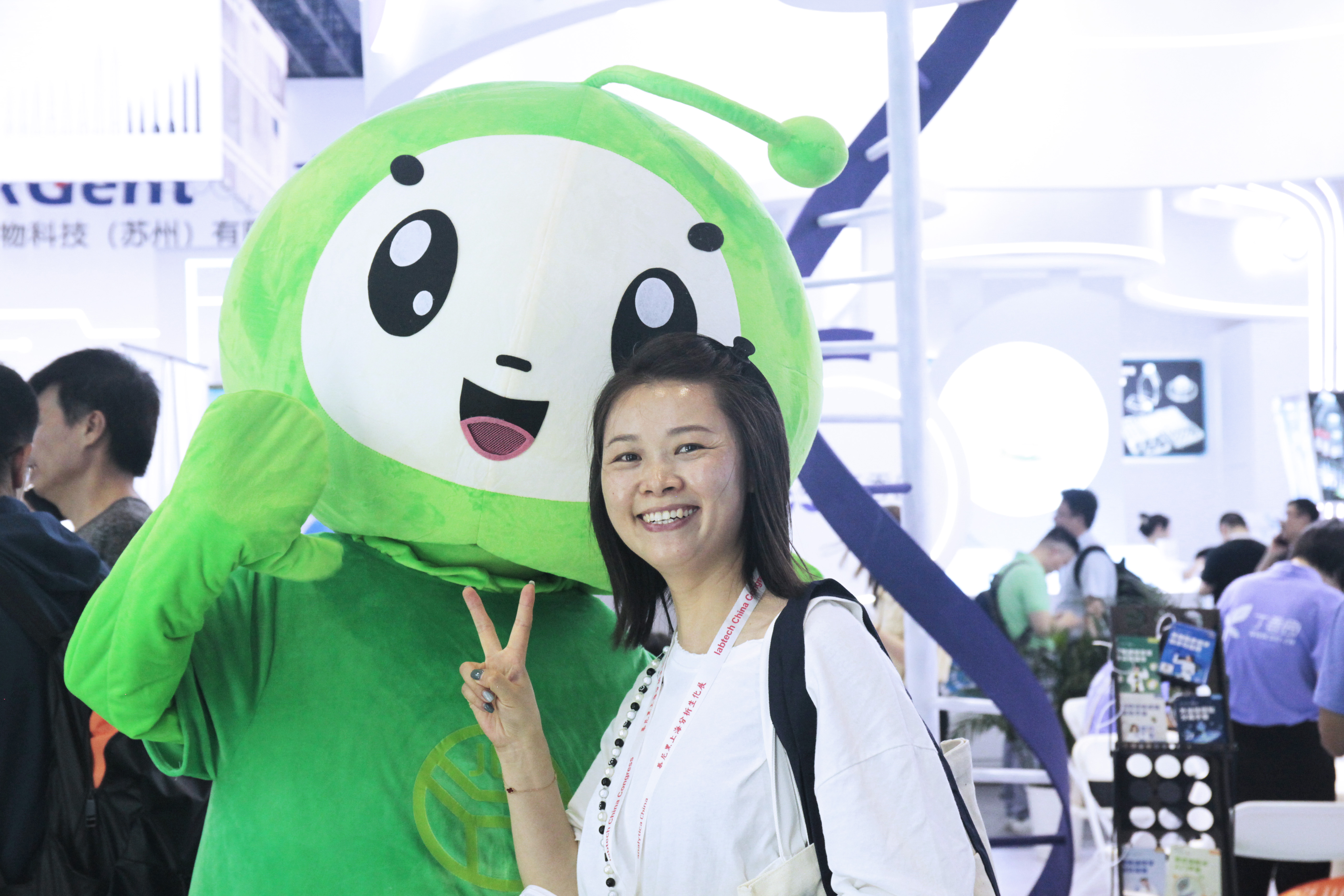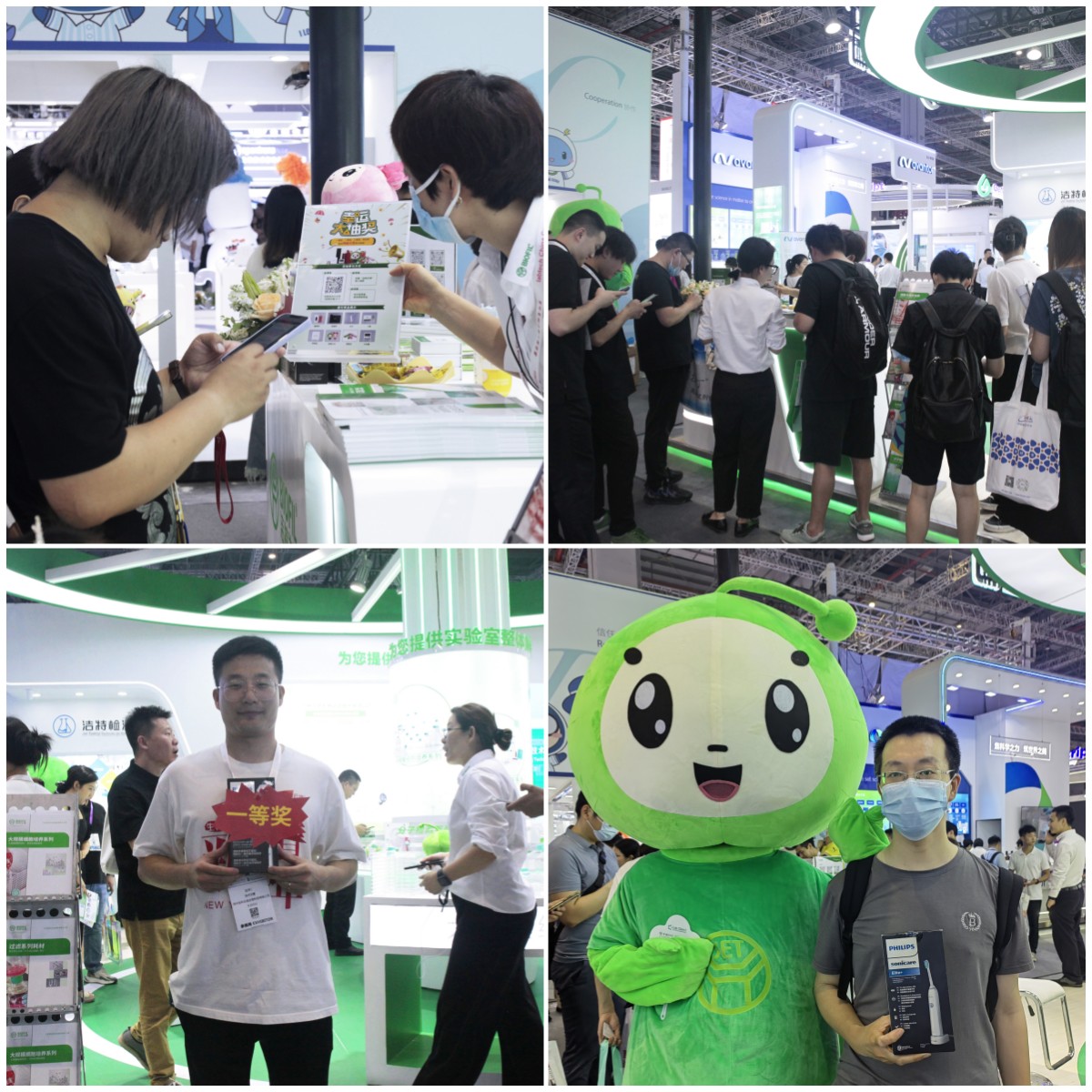 潔特生物以72平特裝展臺盛裝出席本次展會,展臺通體VI綠清新亮眼,C位圓形產(chǎn)品展示區(qū)時尚大氣,在可愛的小潔小特IP公仔點(diǎn)綴下更添一份萌趣。與此同時,更有小特等身人偶與來訪客戶交流互動,嗨翻全場,吸引了眾多海內(nèi)外參展觀眾前來參觀打卡。
